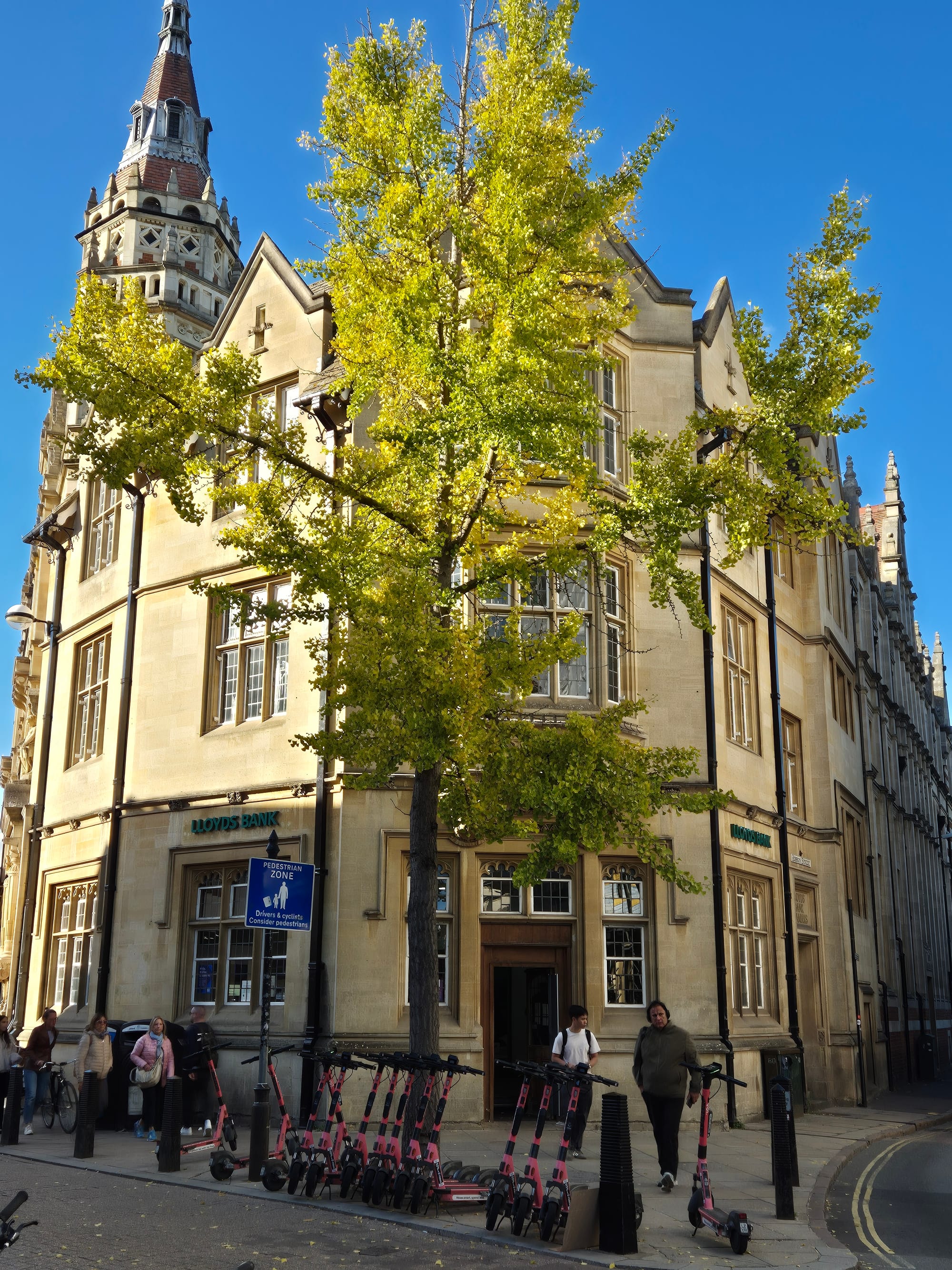 We got back into Cambridge, and I went to my new British bank, Lloyds, to activiate my new British bank card. Lloyds, Cambridge, looked different from Scotiabank, Lynn Valley Centre. The outside was quite different. Notice all the electric scooters in a row: