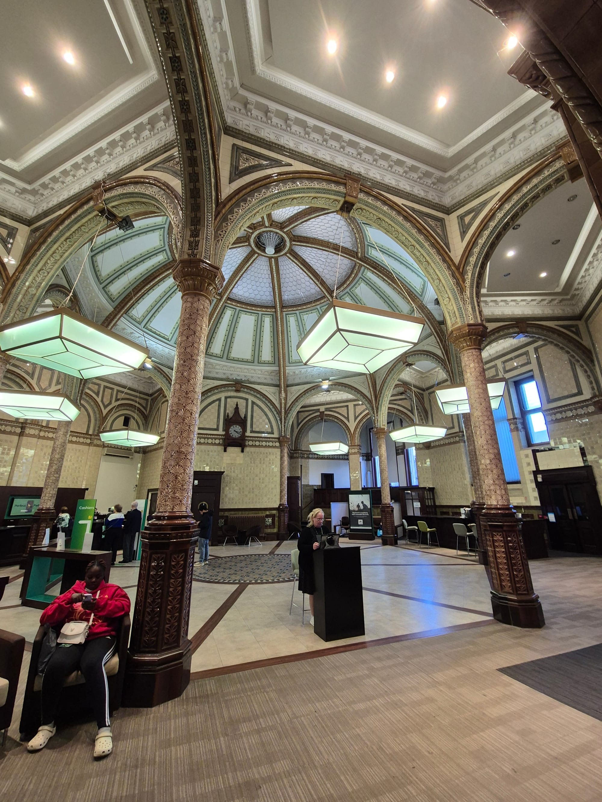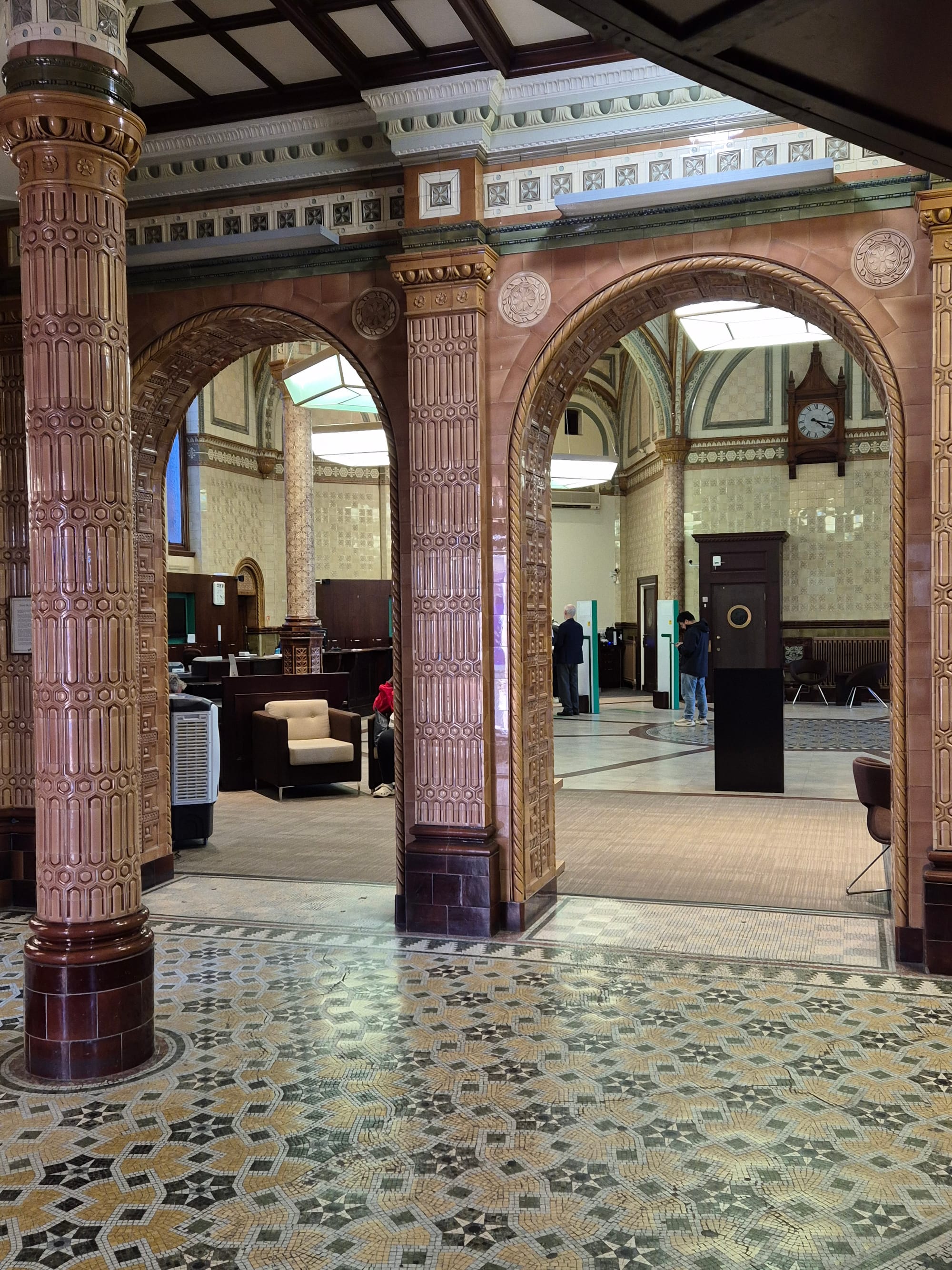 But the interior of the bank - wow! See the woman at the tall desk in the middle of the entrance in the picture below? She stops everyone coming in, and either deals with your request, helps you at the cash machines, directs you past her desk to the correct teller, or asks you to sit down in reception while she texts for an account manager, who comes out with a laptop and fixes things for you right there and then.