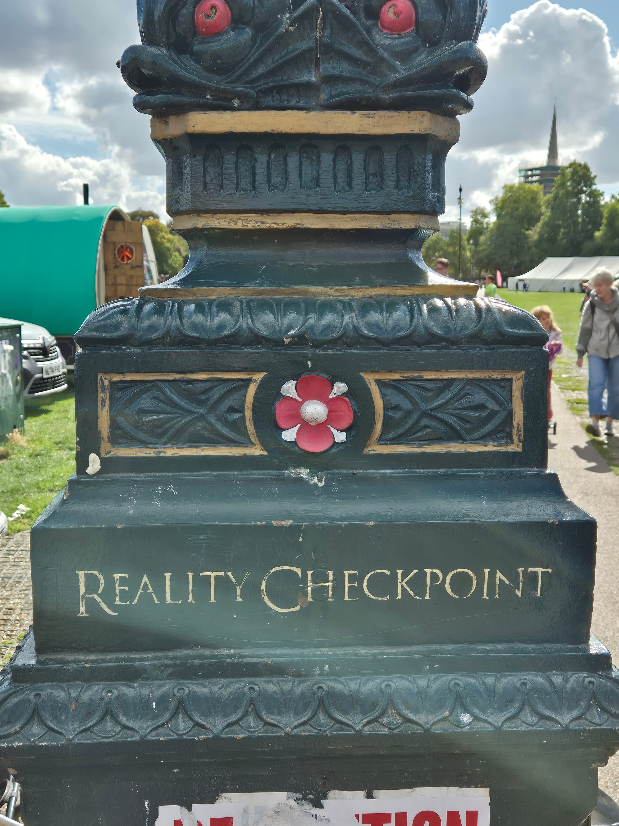 At the end of "Freshers' Week" (second week of October) there was a huge Freshers' Fair in a cluster of marquees set up on Parker's Piece, a big square grassy common in the middle of Cambridge. Trinity College owned the green until 1613, when they gave it to the town of Cambridge in exchange for another green space on the other side of the River Cam. Before that, in 1587, a cook at Trinity College leased 10 acres of the common from the college, and it's still named after him, as people used to call it Parker's piece of land. In the middle of the common is a big iron lampost, and on one side, as you face East, there's an inscription: